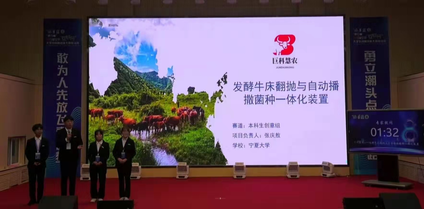 6月27日,“建行杯”第八届宁夏“互联网+”大学生创新创业大赛总决赛圆满落幕,我院康少付等老师指导,2020级机械工程(智能制造)班张庆敖主持的“巨科慧农—发酵牛床翻抛与自动播撒菌种一体化装置”荣获高教主赛道(本科)金奖。