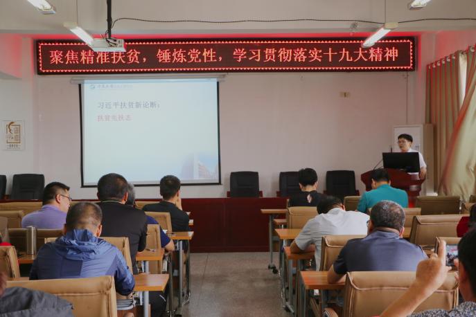 2019年6月12日下午,金沙集团1862cc在明远楼512室,举办了《聚焦精准扶贫,锤炼党性,学习贯彻落实十九大精神》专题讲座。讲座由金沙集团1862cc副书记靳永雄主讲,学院全体教师、党员参加,讲座由学院党委书记钟子杰主持。