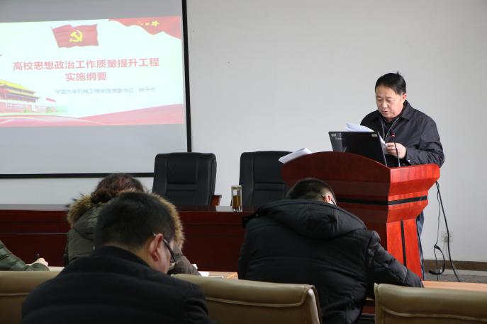为进一步推动党的十九大和高校思想政治工作会议精神落地生根,金沙集团1862cc于1月3日召开全体教职工大会,由学院党委书记钟子杰同志组织学习了《高校思想政治工作质量提升工程实施纲要》(以下简称《纲要》)。