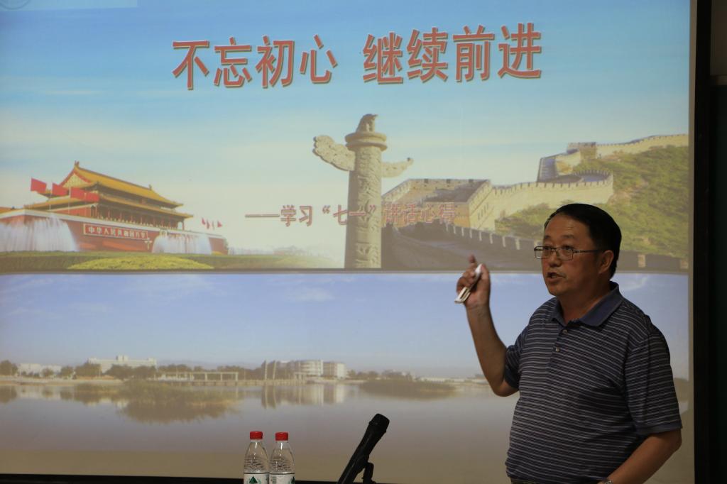 首先,钟子杰书记以《不忘初心 继续前行》为题组织大家认真学习了习近平总书记在庆祝中国共产党成立95周年大会上的重要讲话。他从一个“中国梦”、两个“敢于”、三个“长期坚持、永不动摇”、四个自信、五个“反对”、七提“理想信念”、提到八位党和国家领导人、十次强调“不忘初心、继续前进”概括总结了讲话内容。大家一致表示,习近平总书记“七一”重要讲话全面回顾了我们党带领中国人民走过的光辉历程,高度评价了我们党作出的历史贡献,科学概括了历史给予我们的重要启示,深刻阐述了面向未来、面对挑战必须牢牢把握的八方面要求,贯穿了“不忘初心、继续前进”的主题,体现了崇高的使命意识。讲话内涵丰富、思想深刻、令人鼓舞,对做好学院各项工作具有重要指导意义。