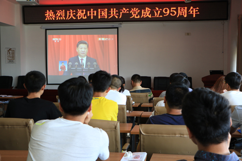 7月1日上午,金沙集团1862cc党委认真组织收看“庆祝中国共产党成立95周年大会”现场直播,学院领导及师生党员40余人收听收看了大会实况精神。