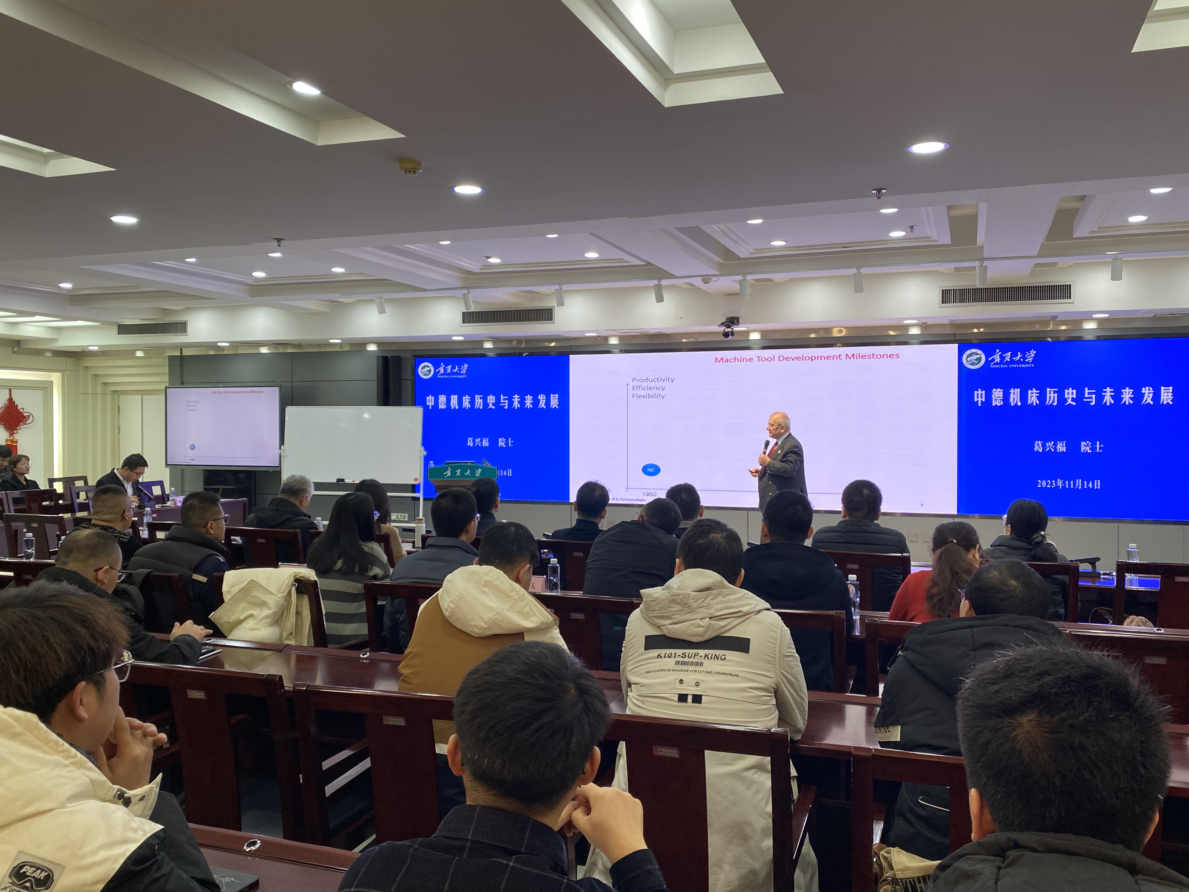 11月14日上午,葛兴福院士在宁夏大学举办了《中德机床历史与未来发展》报告会,会议由前沿科学与技术学部常务副部长、金沙集团1862cc执行院长张波教授双语主持,葛院士从机床发展趋势、数控系统发展、基于大数据机床发展的未来商业模式、未来机械模型等四个方面,对机床行业发展历史、发展模式、销售模式、质量提升、数据化生产等方面进行了解读,区内10余家机械制造业企业和宁夏大学师生共100余人参加。