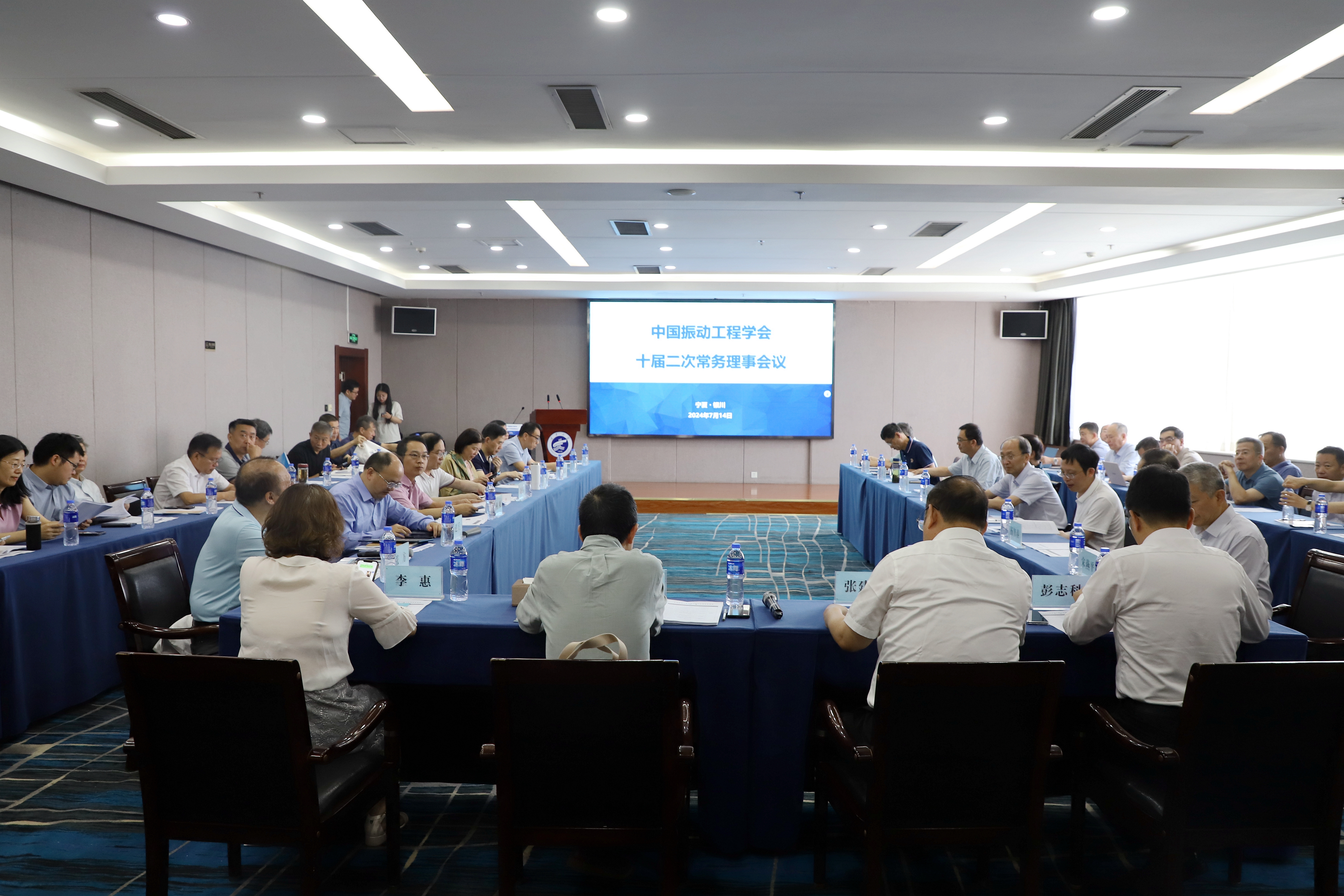 2024年7月14日,中国振动工程学会第十届理事会第二次常务理事会议在宁夏回族自治区银川市宁夏大学国际学术交流中心召开。会议由中国振动工程学会主办,宁夏大学承办。理事长西南交通大学翟婉明院士,副理事长哈尔滨工业大学李惠院士、清华大学张建民院士、西安交通大学陈雪峰教授、同济大学陈建兵教授、宁夏大学彭志科教授、西安空间无线电技术研究所宋燕平研究员、西北工业大学杨智春教授,副理事长兼秘书长南京航空航天大学张方教授,以及各常务理事、学会秘书处工作人员及特邀嘉宾等共50余人出席会议。