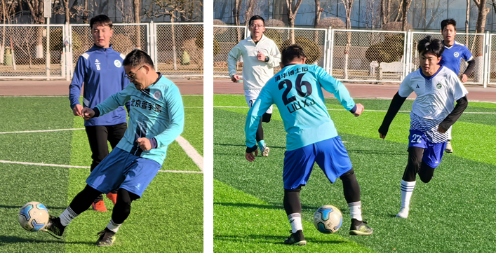 刘辛军教授司职队伍左前锋,在比赛中展现出娴熟的控球技巧、精准的决断能力、强劲有力且角度刁钻的射门,成功上演帽子戏法。他以实际行动践行了清华大学“为祖国健康工作五十年”的体育精神,让在场师生深切认识到体育锻炼对于科研工作者的重大意义。
