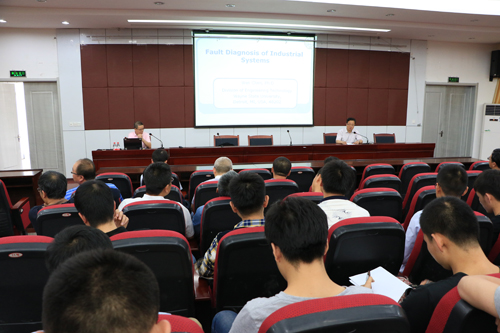 学术报告“Fault Diagnosis of Industrial Systems”6月1日下午在怀远校区研究生楼二楼报告厅举行,金沙集团1862cc朱学军院长主持。报告分析工业系统故障诊断的发展趋势,提出了采用系统模型状态观测器的故障监测和评估方法,尤其是辨识的系统状态和故障可以应用到实时容错控制系统中。另外,还讨论了鲁棒观测和故障监测技术对工业过程和系统健康运行的重要作用,具有良好的应用前景。机械学院和物电学院的老师和研究生参加了学术讲座,并进行了现场学术交流。