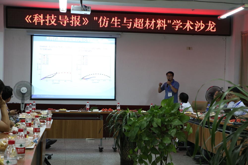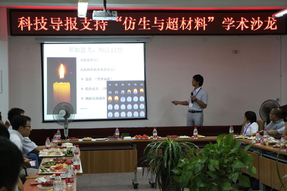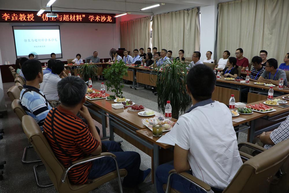 60多名来自不同高校的专家、学者参加了此次沙龙。会议伊始,李垚教授从仿生与超材料的概念引入,用专业的见解详细地介绍了,仿生与超材料的发展现状、应用领域。以生活中的生物为例,由浅入深地讲解仿生材料的概念、制备、结构、性能、应用,继而谈及仿生材料与超材料的概念及其在工业生产、国防科技中的广泛应用;阐述了仿生材料与超材料两者之间的联系,趣味、科学的讲解,赢得了阵阵掌声。与会专家、学者提出了一些深刻的科学问题,李垚教授做了详尽的解答。不同高校、研究所的与会专家也分别发言、讨论,介绍了各自领域内仿生材料的发展及应用。浙江大学秦发祥教授专业性地讲述了各类航空航天超材料特性及其在飞机上的应用,进而谈及从动植物方面获得的有关新型仿生材料特性的一些启示。山东大学、重庆大学、上海交通大学等相关专家分别交流了仿生材料在隐身、军事伪装、光合作用、腐蚀防护等不同领域的应用。沙龙讨论激烈,与会专家学者激情高涨,最后,学术沙龙在一片浓浓的不舍的学术氛围中落下了帷幕。