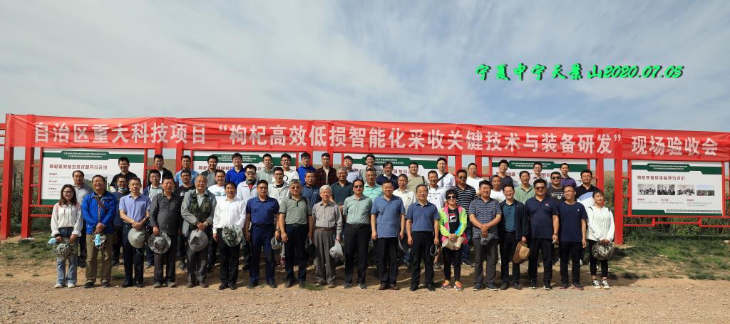 7月5日,在宁夏中宁县中杞集团天景山枸杞种植基地,宁夏科学技术厅组织区内外专家对由宁夏大学和中国科学院合肥物质科学研究院共同主持,西北农林科技大学、中国科学院沈阳自动化研究所、农业部南京农业机械化研究所、合肥工业大学、西安汇星机械科技有限公司、中船重工中南装备有限责任公司等单位共同承担的自治区“十三五”重大科研项目“枸杞高效低损智能化采收关键技术与装备研发”进行了现场验收。