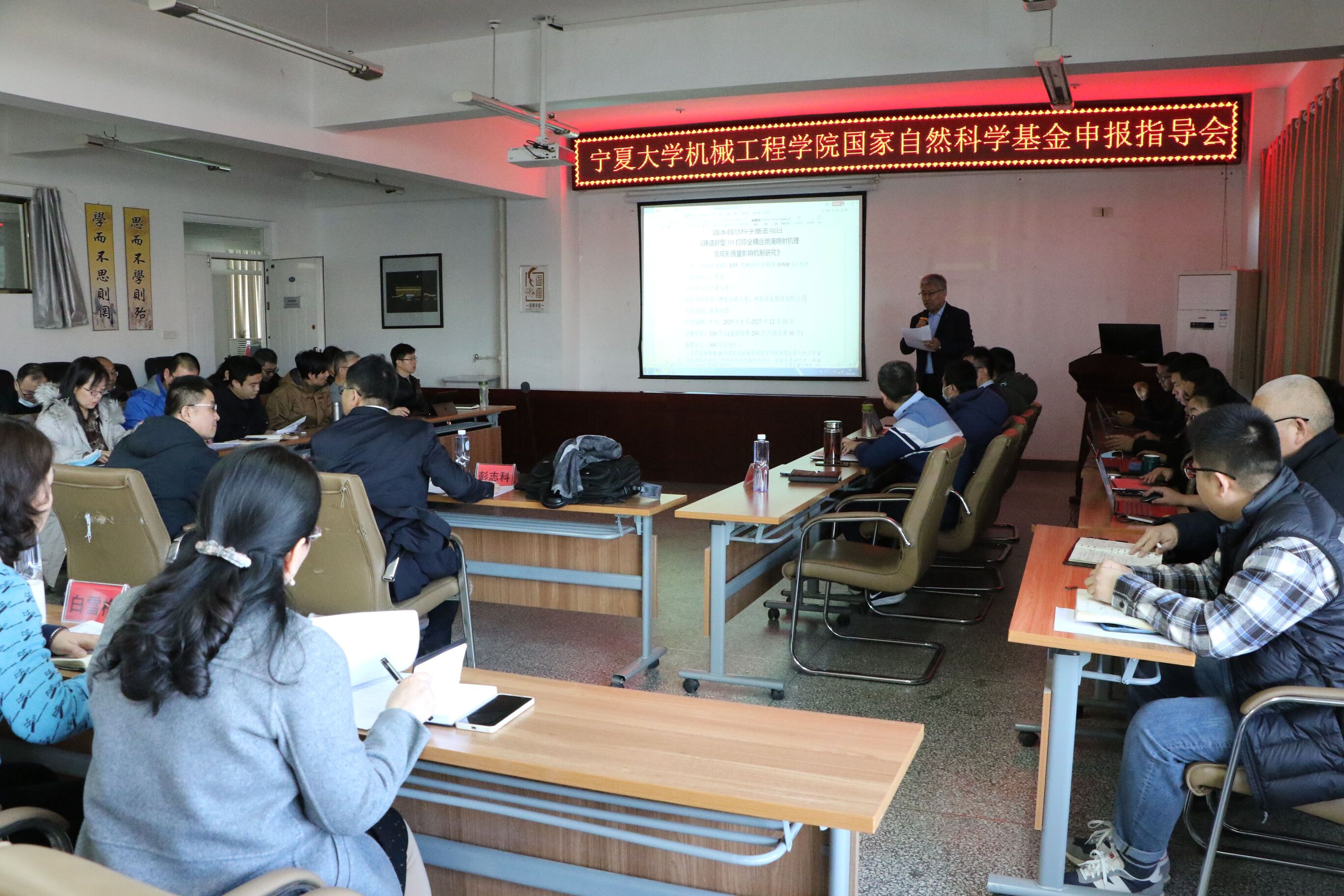 2月20日上午,金沙集团1862cc在学院512室召开了国家自然科学基金申报工作汇报会。宁夏大学校长、“机械工程”学科带头人、国家杰出青年基金获得者彭志科教授莅临会议听取汇报,并对学院教师撰写的国家自然基金申报书进行了指导。学院全体班子成员、青年博士、研究生导师共计40余人参加了工作汇报,王昱潭副院长主持会议。