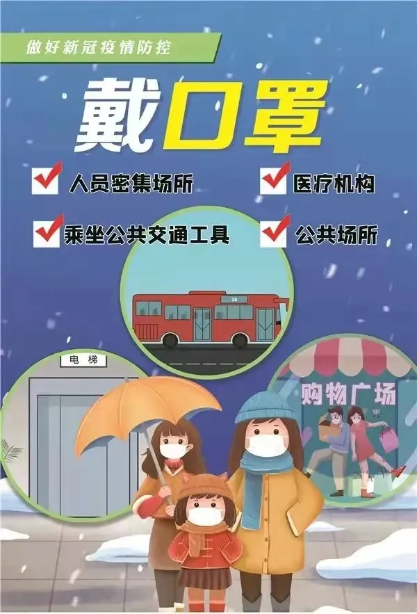 1.在学校、医院、商场、超市、影院、KTV、厢式电梯等人员密集或密闭的场所和乘坐公共交通工具时,应佩戴一次性医用口罩或医用外科口罩。