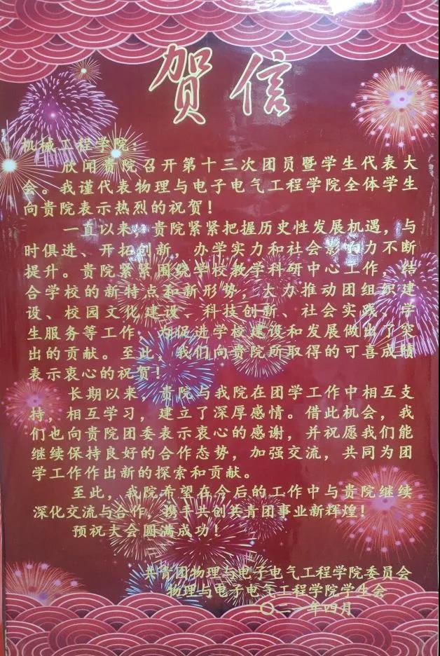 物理与电子电气工程学院学生会执行主席肖博文代表兄弟学院学生会致贺辞
