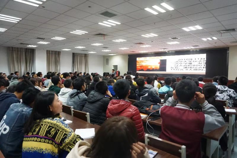 贾老师着重就消防安全、校园治安、预防诈骗、日常安全等四个方面做了详细的讲解。贾老师首先讲的是消防安全,内容涉及发生火灾后灭火器具的使用、逃生技巧、如何防止宿舍火灾等,贾老师列举了各大高校以及本校过去的火灾实例向同学们做了详细的讲述,并分析了发生火灾的原因,以此来警示同学们;接着,贾老师就校园治安、预防诈骗、日常安全所涉及的方方面面做了讲述,内容涉及抢劫和抢夺的情形、法律依据,防盗的基本方法、诈骗的特征、手段极其识别方法和交通安全、毒品危害、酗酒的危害等。这部分内容中,贾老师特别就校园贷、电信诈骗以及传销做了强调。