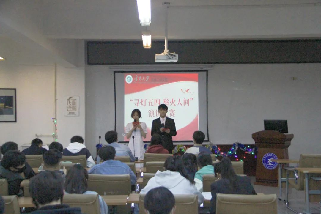 为纪念五四运动,弘扬五四精神。4月29日,金沙集团1862cc于明远楼512举办“寻灯五四,举火人间”演讲比赛决赛。本次比赛由马科、王浩然、刘浩、戴婷婷、曹冠玉五位同学担任评委。