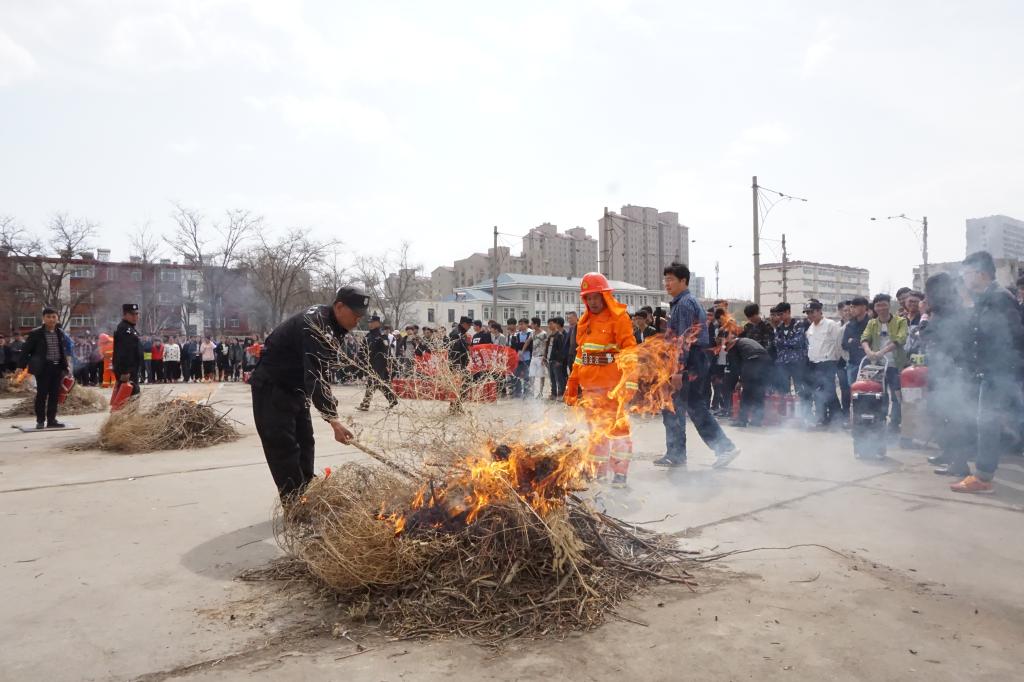 消防实战演练宁夏大学D区进行。演练前,保卫处工作人员首先向同学们解释了寝室不能用大功率电器的原因,接着向同学们提出了在寝室不乱接电源、不使用明火、不焚烧物品,在教室或实验室服从管理规定等一些注意事项,并且为同学们传授了一些逃生措施以及如何快速有效的报警。之后,工作人员向同学们演示了如何穿消防服以及消火栓和灭火器的使用。在所有的准备措施完成后,同学们在工作人员的指导下体验灭火的真正过程。