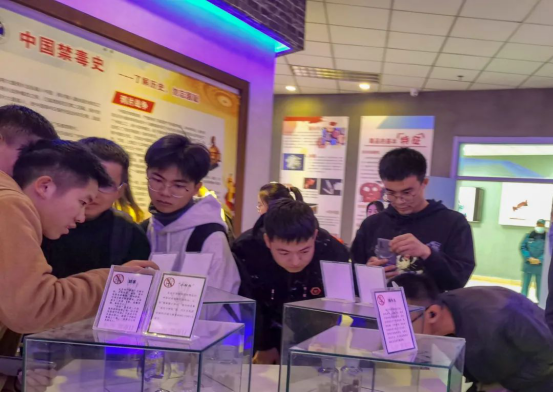 进入展馆,映入眼帘的是形形色色的毒品标本。讲解员带领着同学们了解了中国的禁毒史,从毒品的危害、特征方面带领大家深入了解毒品。同学们听得十分投入,不时地走到毒品标本前驻足参观,对着一副副吸毒工具注视良久,不由因它们的危害之深而发怵。