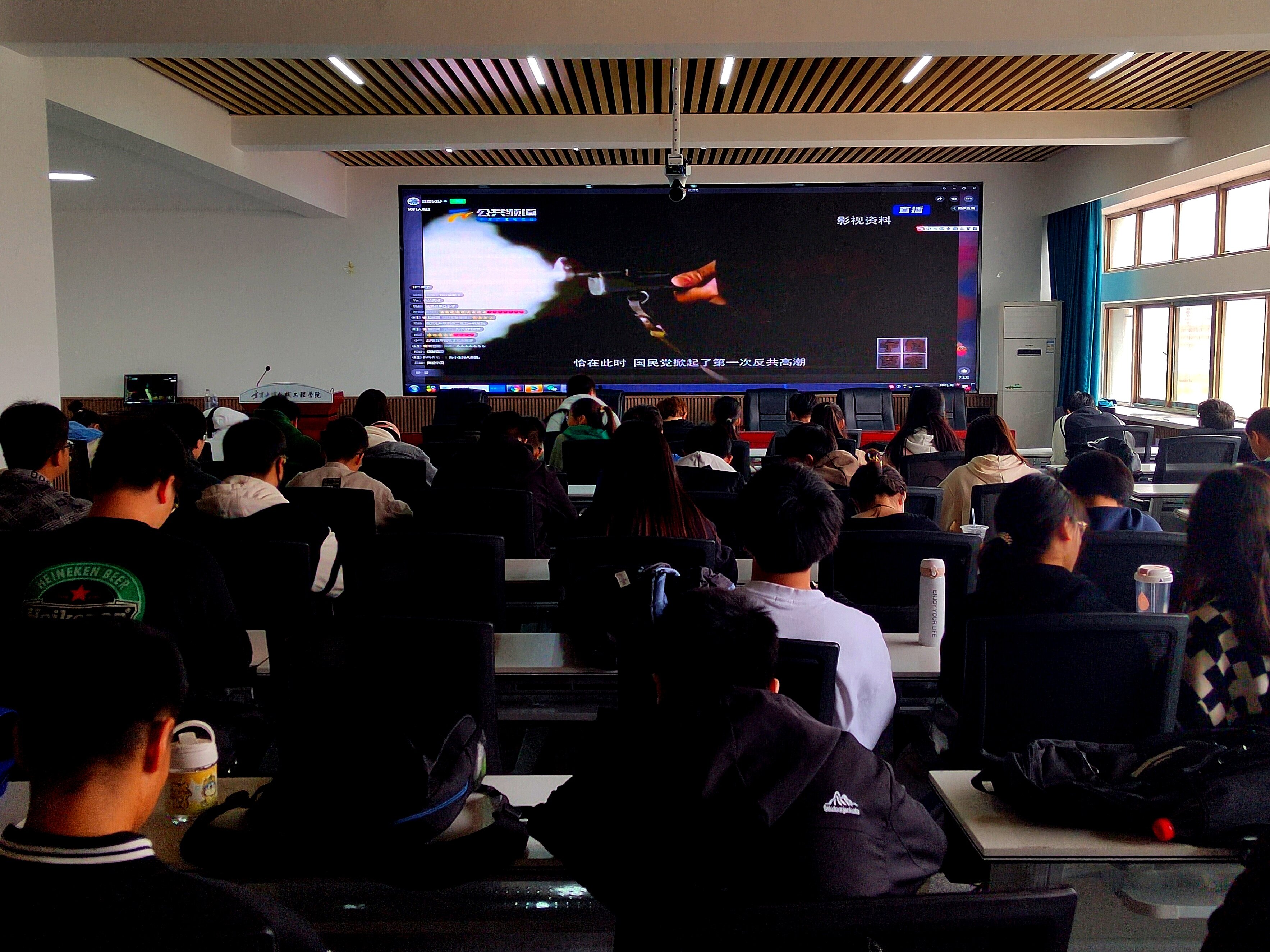 为缅怀革命先烈、加强爱国主义教育、革命传统教育和传统美德教育,强化思想道德建设,发扬革命传统,振奋民族精神,4月3日,金沙集团1862cc于文萃校区明远楼512组织学生观看由宁夏广播电视台公众节目中心策划组织的“沉浸式、嵌入式、互动式”红色体验大型全媒体直播节目《“4•3清明节”缅怀英烈•传承信仰之光》。