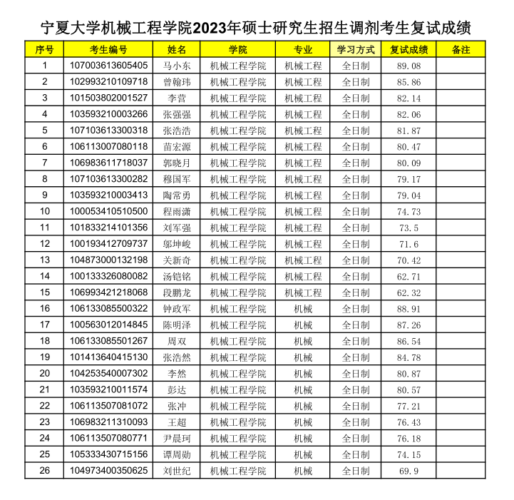 2023年4月11日-12日,我院组织开展2023年全国硕士研究生调剂考生现场复试工作。现对复试成绩进行公示。