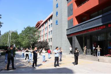按照宁夏大学校工会的部署安排,金沙集团1862cc组织全体行政管理人员参加工间操活动。