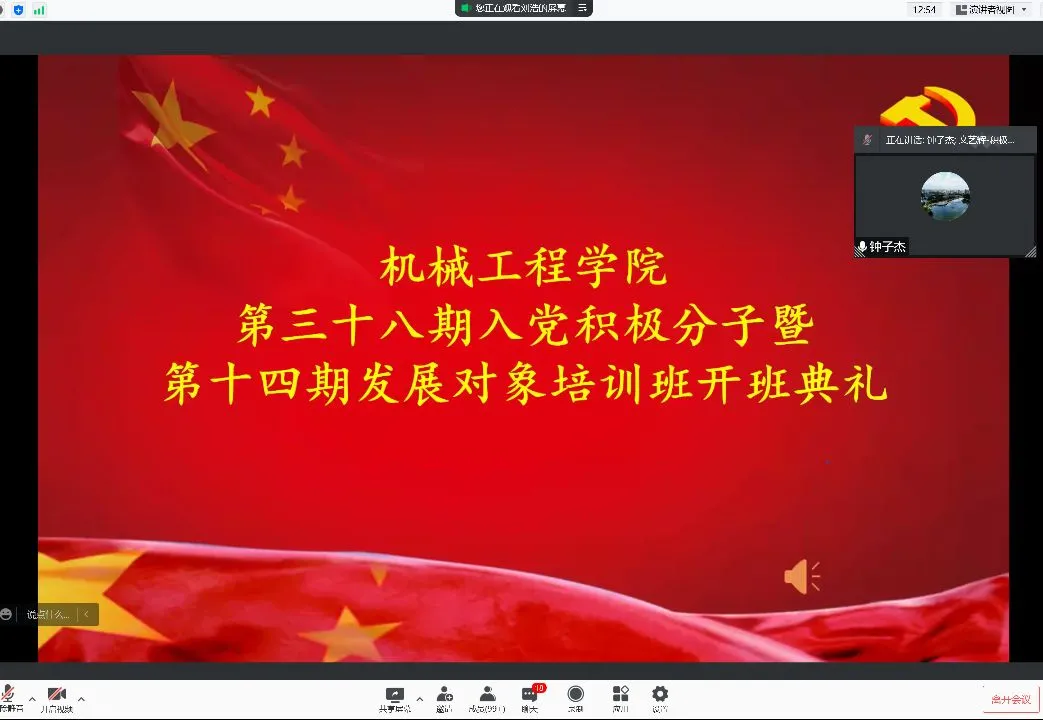 10月20日,金沙集团1862cc以线上举办的方式进行了第三十八期入党积极分子暨第十四期发展对象培训班开班典礼。金沙集团1862cc党委书记钟子杰,学院党委副书记赵亚峰,党委副书记白雪梅,卓工及机械党支部书记何佳,过控及交通党支部书记王凤霞,研究生党支部书记王明出席此次典礼。会议由学院党委副书记白雪梅主持,学院115名入党积极分子与56名发展对象参加了此次开班典礼。