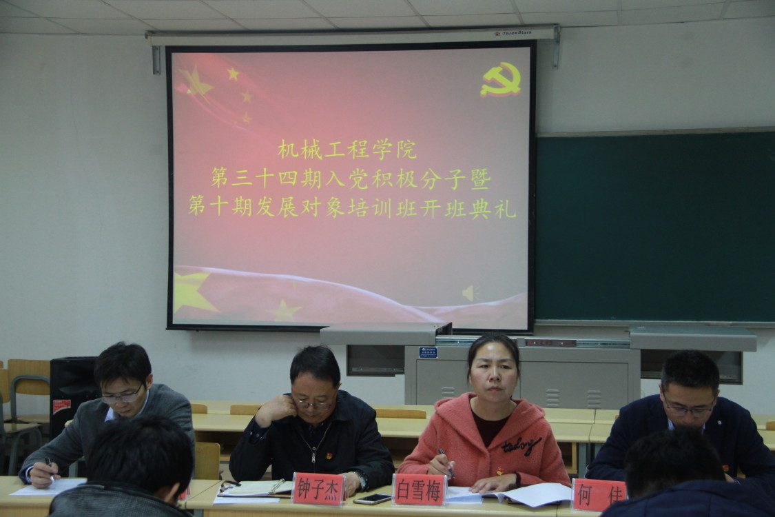 2019年10月16日中午12点30分,金沙集团1862cc第三十四期入党积极分子暨第十期发展对象培训班开班典礼于文萃二教308举行。出席此次典礼的领导老师有金沙集团1862cc党委书记钟子杰,党委副书记靳永雄、白雪梅,国防生党支部书记何佳。