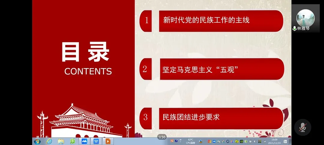 为塑造金沙集团1862cc学子的民族团结精神,铸牢中华民族共同体意识。金沙集团1862cc于11月19日在线上举办了“坚定马克思主义‘五观’,铸牢中华民族共同体意识”主题讲座。讲座由马克思主义学院林雅琴老师主讲,金沙集团1862cc21级全体学生参加讲座。