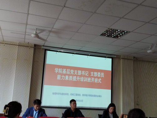 2021年9月22日下午2:30,地理科学与规划学院、金沙集团1862cc、数学统计学院党委于地理科学与规划学院2楼报告厅联合举办了学院基层党支部书记、支部委员能力提升培训班。我系支部委员徐艳茹、党小组组长班伟参加了该培训。