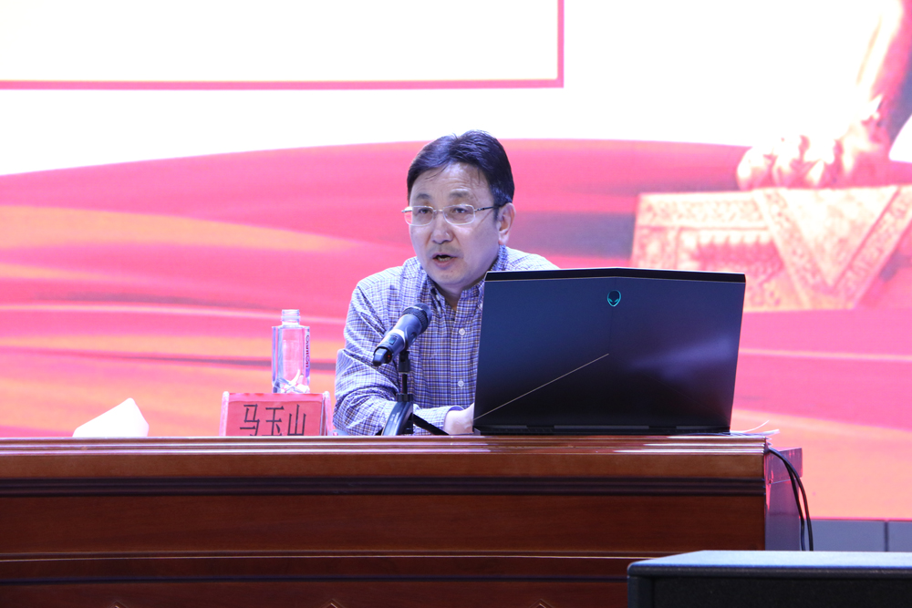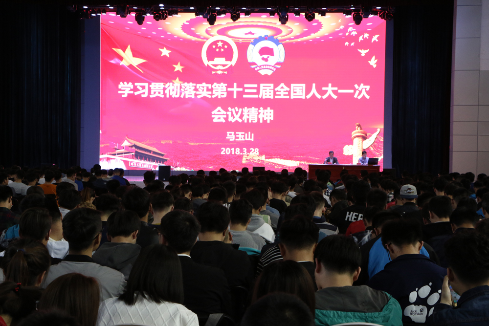马玉山博士以简洁、深刻的语言向大家介绍了2018年两会概况,重点就《政府工作报告》、《人大常委会工作报告》、《最高人民法院报告》、《最高人民检察院工作报告》、监察法主要精神、国务院机构改革方案精神和栗战书委员长在闭幕会上的讲话精神等内容予以传达。马玉山博士结合宁夏实际,特别是结合产、学、研领域,谈及机械学科和先进装备制造业的发展,就自己的个人经历对同学们的大学生活以及毕业后的就业发展提出自己的建议,他认为大学生应积极向上,学习一技之长服务社会成长成才,理应务实、坚持,报告既有理论深度、思想深度,又有很强的针对性。