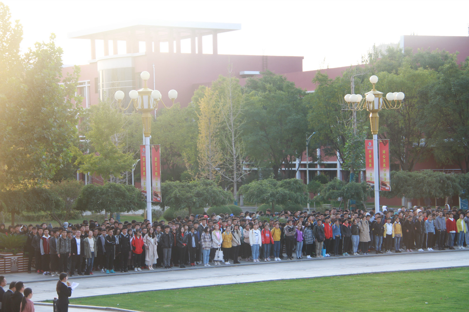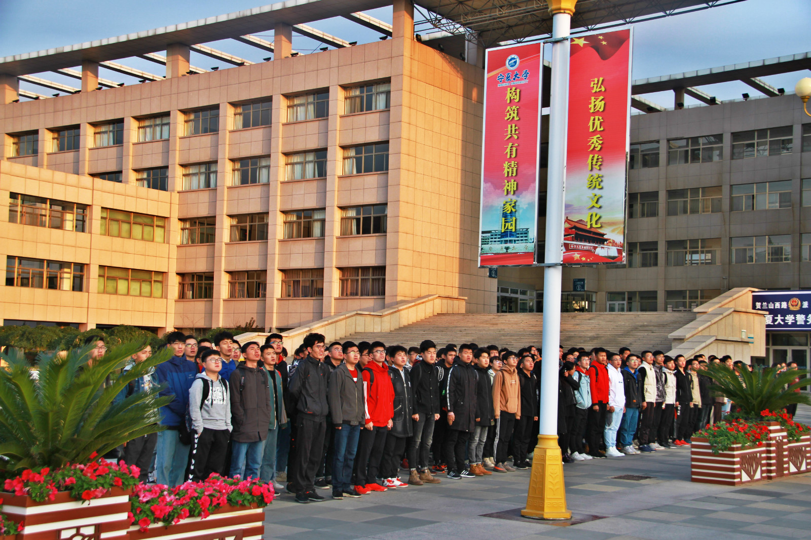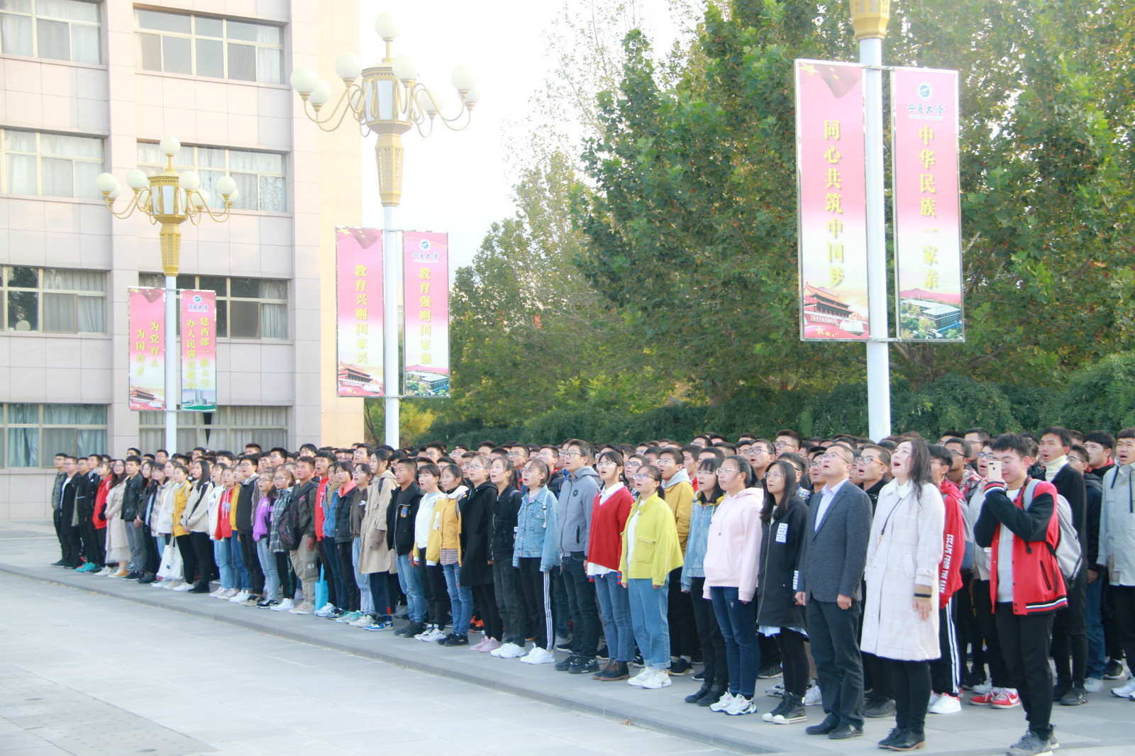 2019年10月14日早上7:30,金沙集团1862cc升国旗仪式在贺兰山校区德勤楼前隆重举行,出席此次升旗仪式的领导老师有金沙集团1862cc党委副书记靳永雄以及学生工作办公室全体老师,16、17、18、19级全体同学参加了本次升旗仪式。升旗仪式由金沙集团1862cc学生工作办公室主任何佳主持。
