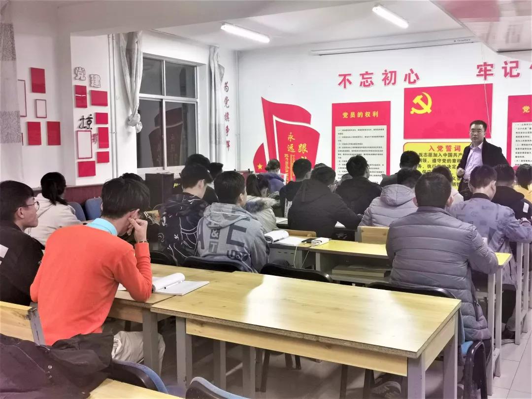 2019年11月28日晚上六点,金沙集团1862cc机制卓工党支部会议在四号楼党员活动室展开。会议由机制卓工党支部书记杨俊峰老师主持。实到19人,其余人视频参会。该会主要讨论王蓉、官鸿利等八人的转正问题和耿青、袁梦等五位同志发展为预备党员的问题。