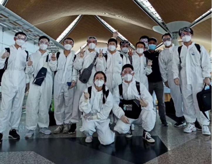 2020年8月初,金沙集团1862cc学院领导召开交换生回国安全会议,商议在外20名交换生分批次回国的方案。会议决定,向每位回国的交换生寄出充足的口罩,防护衣,护目镜等医疗物资,并和交换生所在学校积极沟通交换生归国交通事宜,做好回国准备工作。8月4日,彭亨大学交换的五名同学以及马来西亚理工大学交换的三名同学,在吉隆坡机场顺利搭载国内航空公司航班,于当晚抵达广州白云机场,在进行核酸检测。
