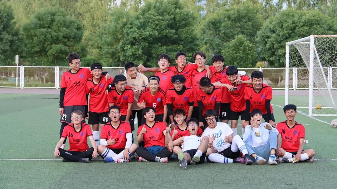 操场上是机械学子奔跑的身影,他们身着红色队服,脸上洋溢着开心的笑容,也彰显了他们内心对足球运动的热爱。