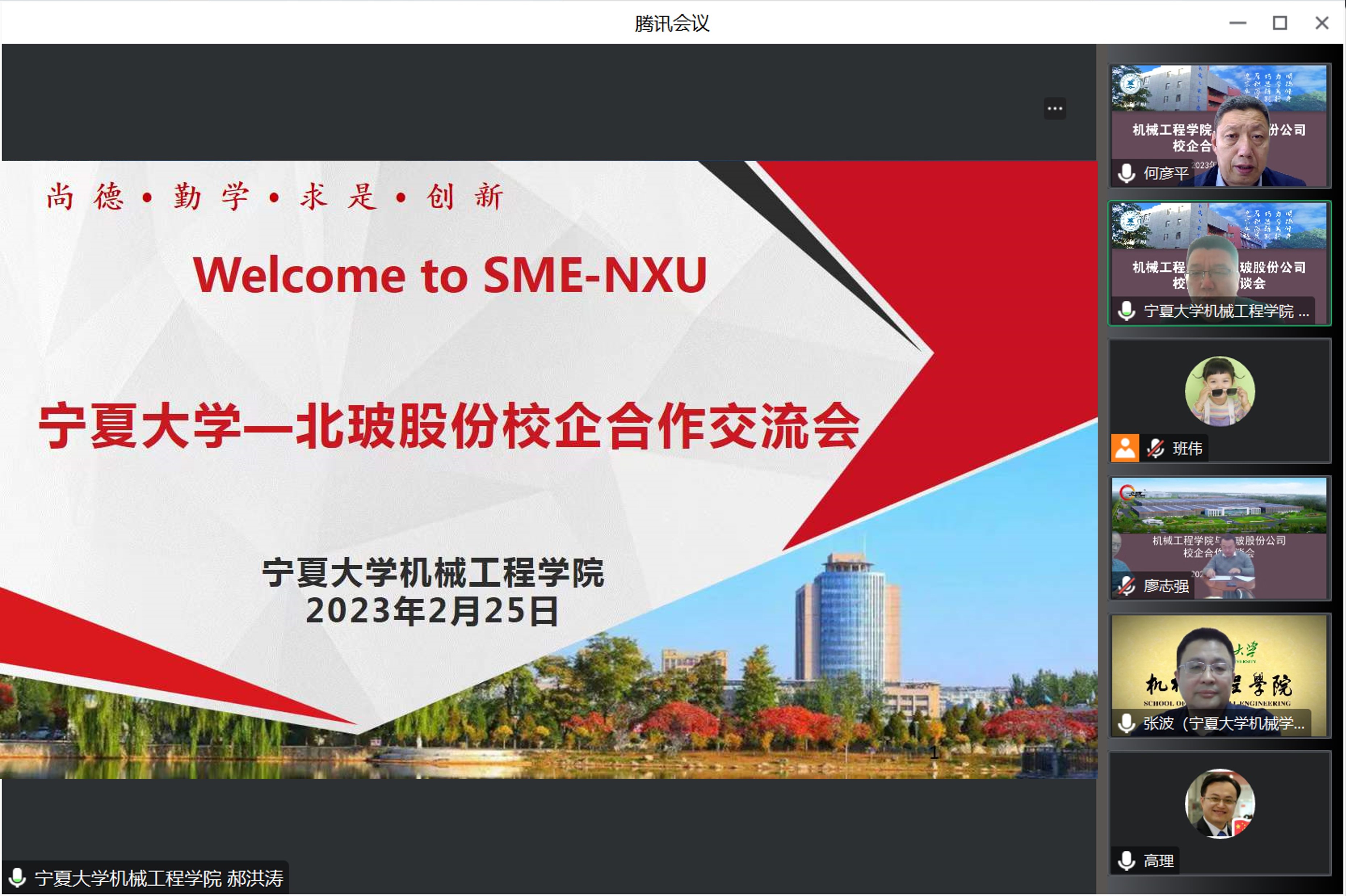 【金沙集团1862cc讯 石栋/文】为进一步深化产教融合,推动校企合作,2023年2月25日,我院线上召开金沙集团1862cc与洛阳北方玻璃技术股份有限公司校企合作交流会,与北玻股份就人才培养、科研合作、实习就业等事宜召开座谈会展开交流。北玻股份总裁高理及企业相关负责人、学院领导班子成员及系室负责人、教师代表参加交流会,会议由副院长郝洪涛主持。