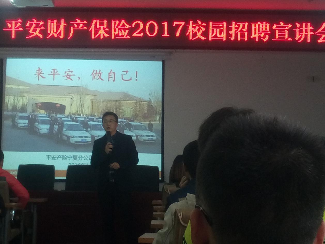 为解决应届毕业生就业问题,2016年11月17日下午安产险宁夏分公司来我院进行宣讲招聘。我院毕业生相关专业同学积极参加。