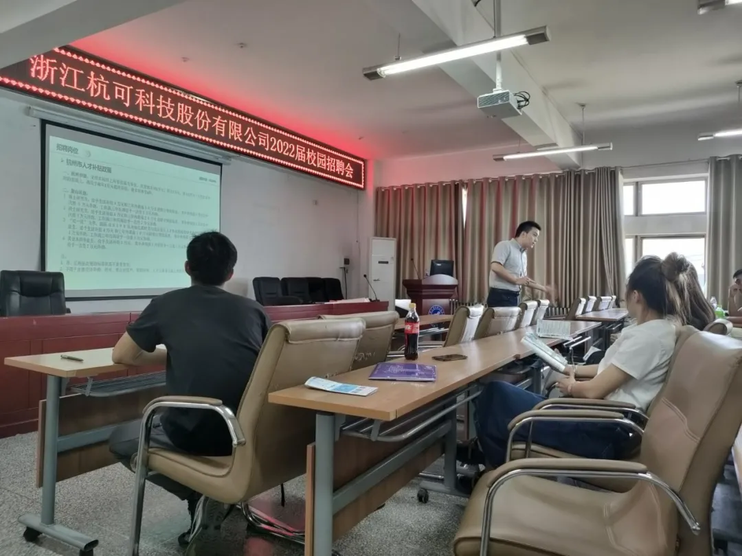 9月28日,浙江杭可科技股份有限公司在明远楼512室举办了2022届校园招聘会。此次招聘会面向金沙集团1862cc2022届毕业生及其他有意愿的学生。