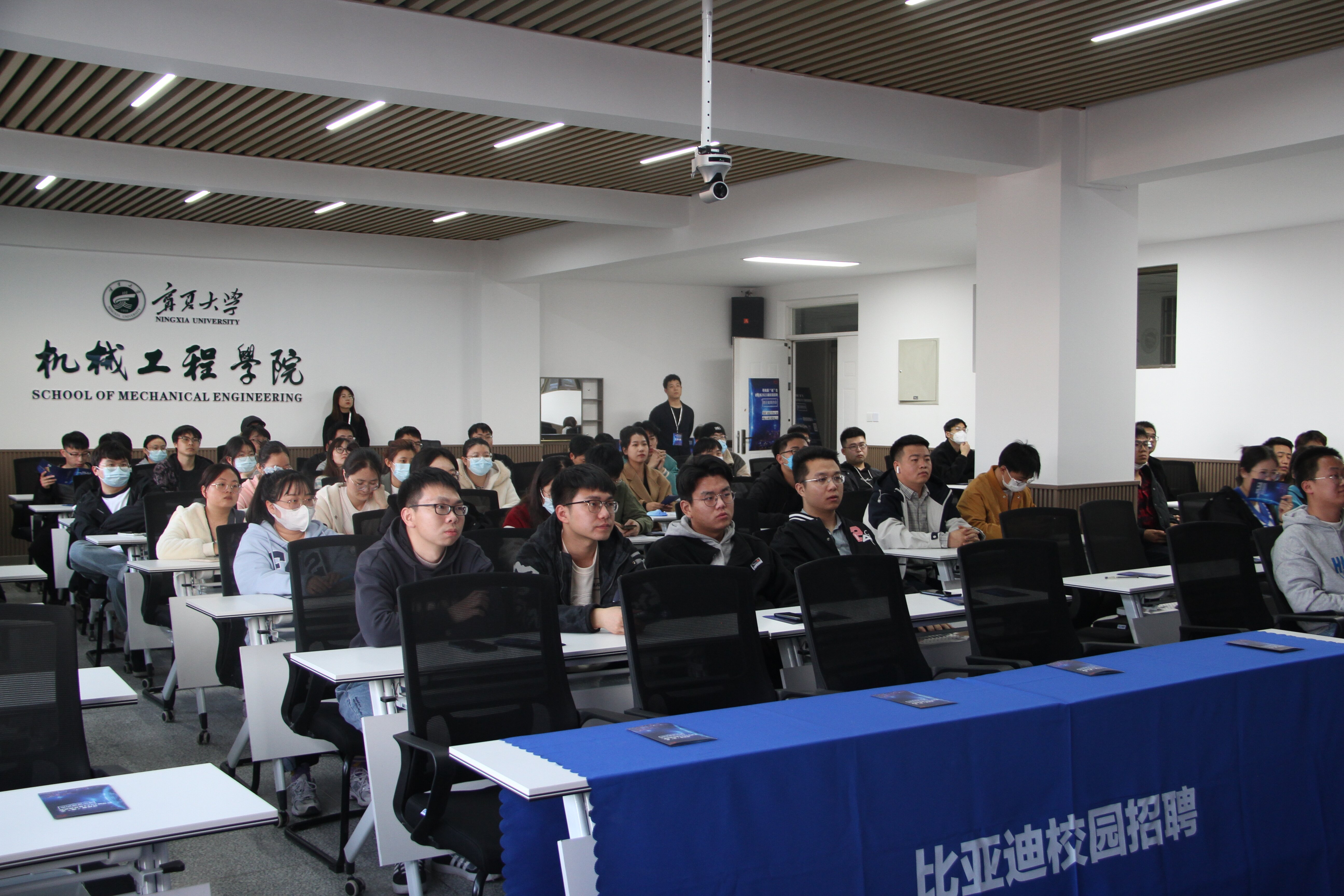 宣讲会上,宣讲人就公司各方面情况作了详细说明,并播放了关于比亚迪股份有限公司的宣传片,向大家展示了一个技术先进,精益求精,高效可靠的汽车制造过程。同时宣讲人介绍了其公司的商用车全球化运营以及比亚迪轨道交通等成就、招聘要求、薪酬福利,并重点强调了人才发展的培养体系以及其发展通道。随后,比亚迪股份有限公司对“明日之星·百日蜕变生训练营”的传统人才培养项目作出了介绍和讲解,充分彰显了其公司对毕业生培养与选拔的高度重视,同时,宣讲人一一解答了现场提出的相关问题,使大家对公司有了进一步的了解。