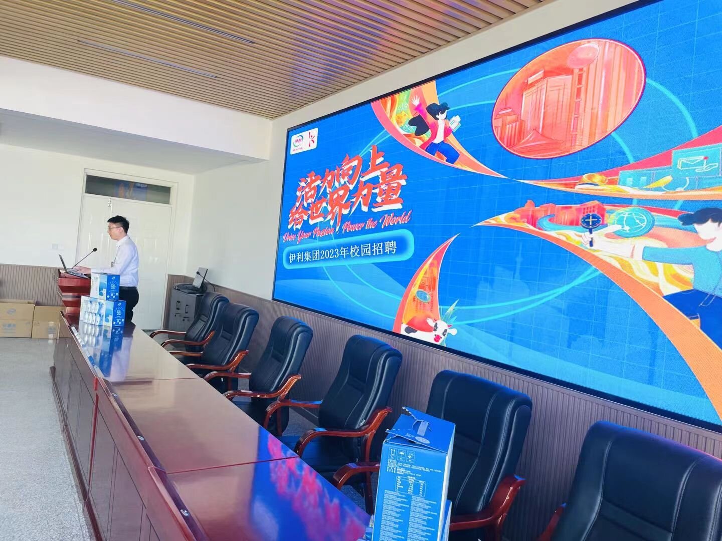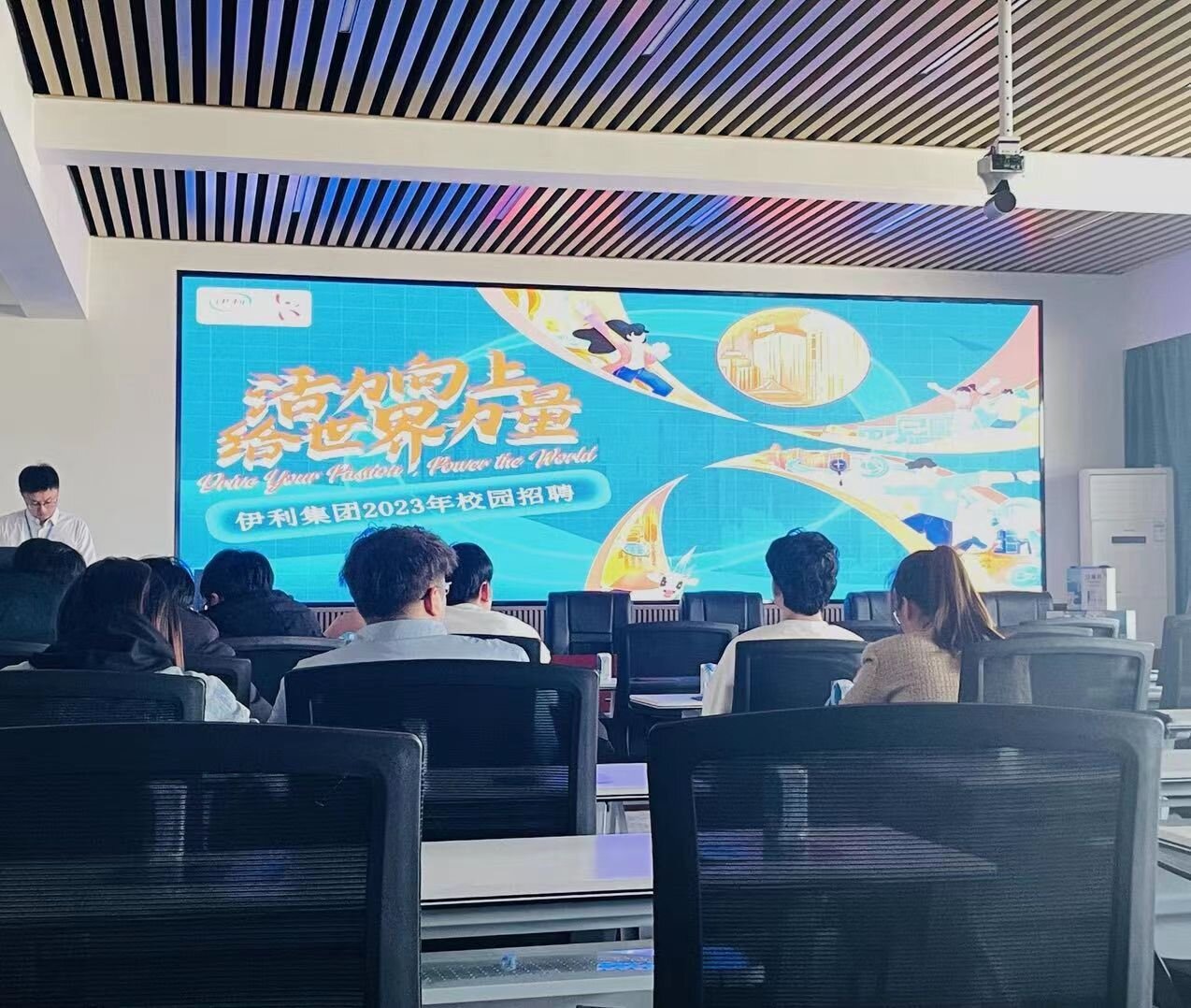 招聘会上,伊利集团宣讲主持人对伊利集团的主营业务与工作进行了介绍,伊利集团本次招聘岗位主要有生产培训生和生产专训生,并展示了集团近年所来取得的卓越成果。同时主讲人对员工的薪资、福利和发展路线等做出了详细的介绍。