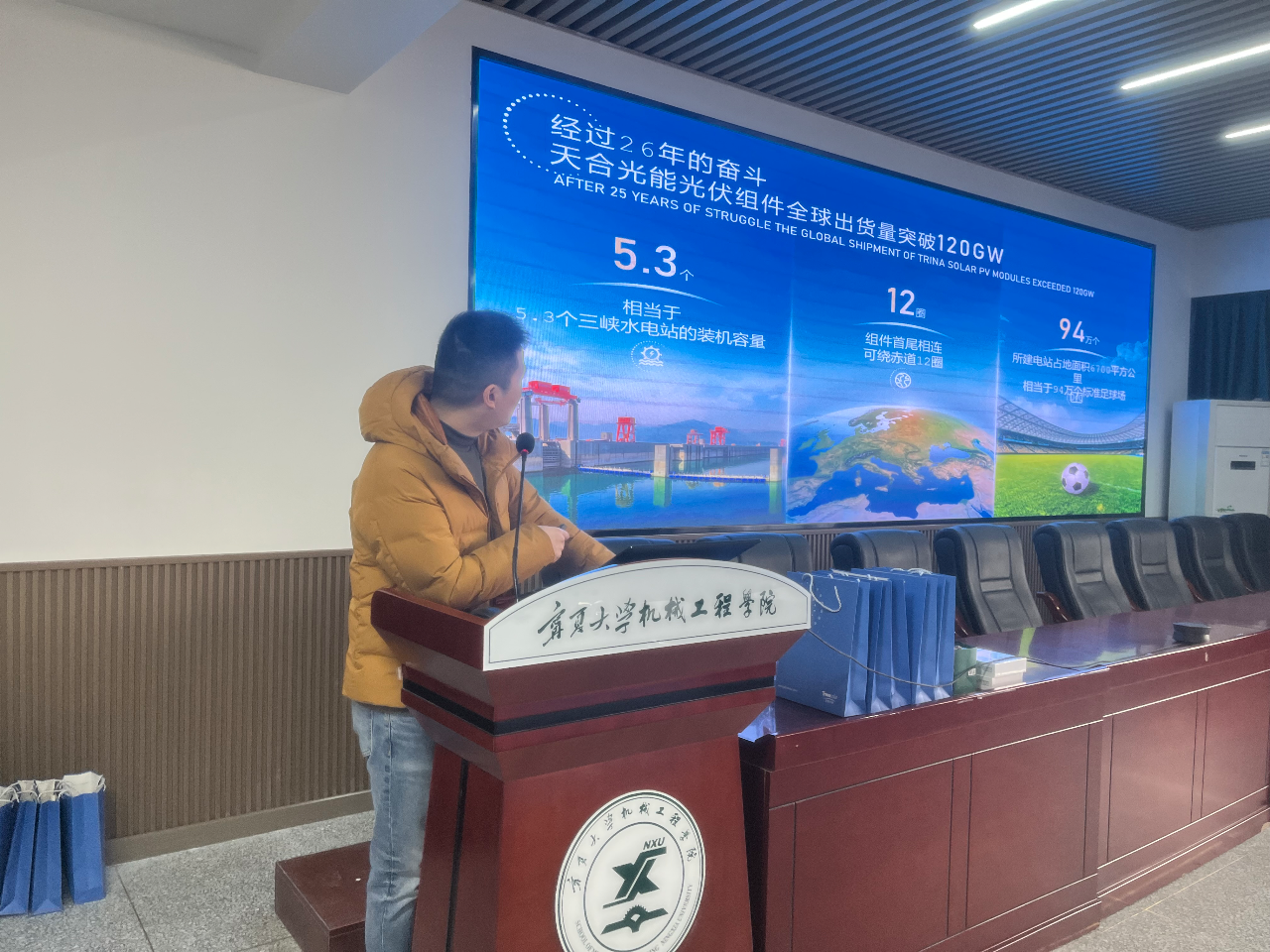 同时,他还介绍了光伏产业的市场需求和技术研发阶段,讲述近几年公司在在光伏制造与研发生产上取得的成绩。