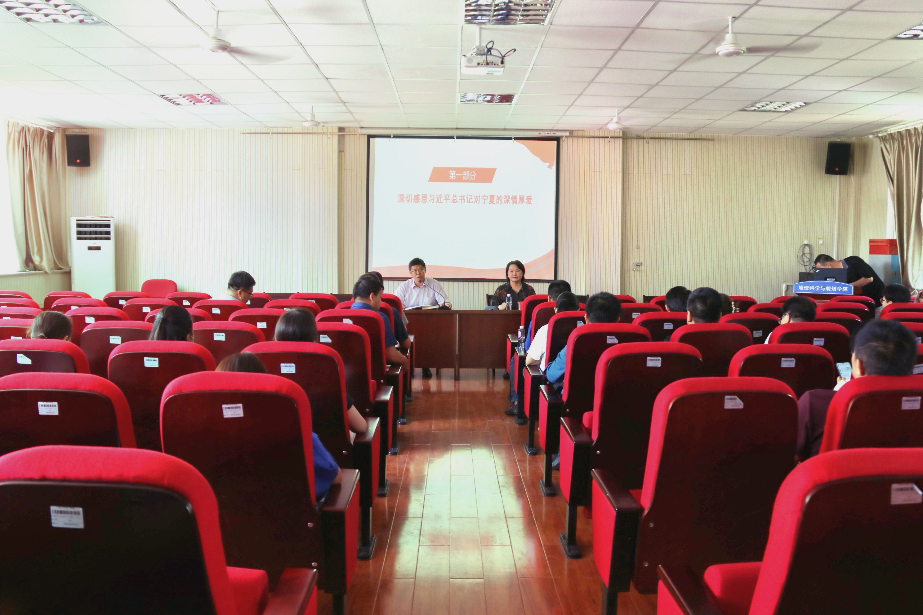 为深入学习领会习近平总书记视察宁夏讲话精神,推动广大师生再学习,再领会,再提高,切实以习近平总书记重要讲话精神指导和推进各项工作,6月29日,金沙集团1862cc和地理科学与规划学院邀请马克思主义学院周萍副教授在文萃校区德润楼二楼报告厅召开“深入学习贯彻习近平总书记视察宁夏重要讲话和重要指示批示精神,凝心聚力继续建设美丽新宁夏”专题辅导报告会,地理科学与规划学院党委书记陈军胜主持报告会,我院教师参加学习。