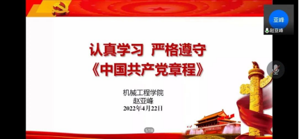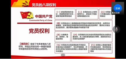 为增强学院入党积极分子及发展对象的党性修养,4月22日,金沙集团1862cc于线上展开了“学习《中国共产党章程》”主题党课培训。此次党课由金沙集团1862cc党委副书记赵亚峰主讲,学院73名入党积极分子和65名发展对象参加培训。