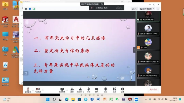 历史是最好的教科书。通过本次党课,进一步引导同学们积极向党靠拢,听党话,跟党走,从百年党史学习中坚定历史自信,不断提升自我,在新时代担当新的历史使命。