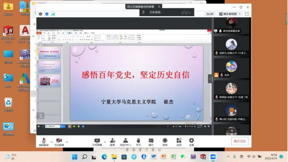为进一步推动党史学习教育常态化长效化,4月13日,金沙集团1862cc开展“感悟百年党史,坚定历史自信”主题党课培训,此次党课由宁夏大学马克思主义学院崔杰老师主讲,学院73名入党积极分子和65名发展对象参加培训。